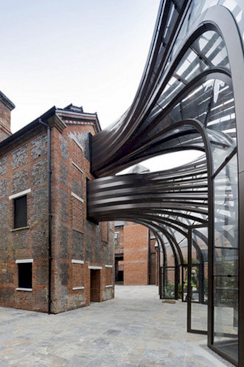 I love this untraditional, restaurant layout. The winding platform sweeps across the lake, allowing the user to fully immerse themselves in this serene and mystical world as the same time as dining. It has a multi-purpose which must be very beneficial when it comes to attracting consumers.